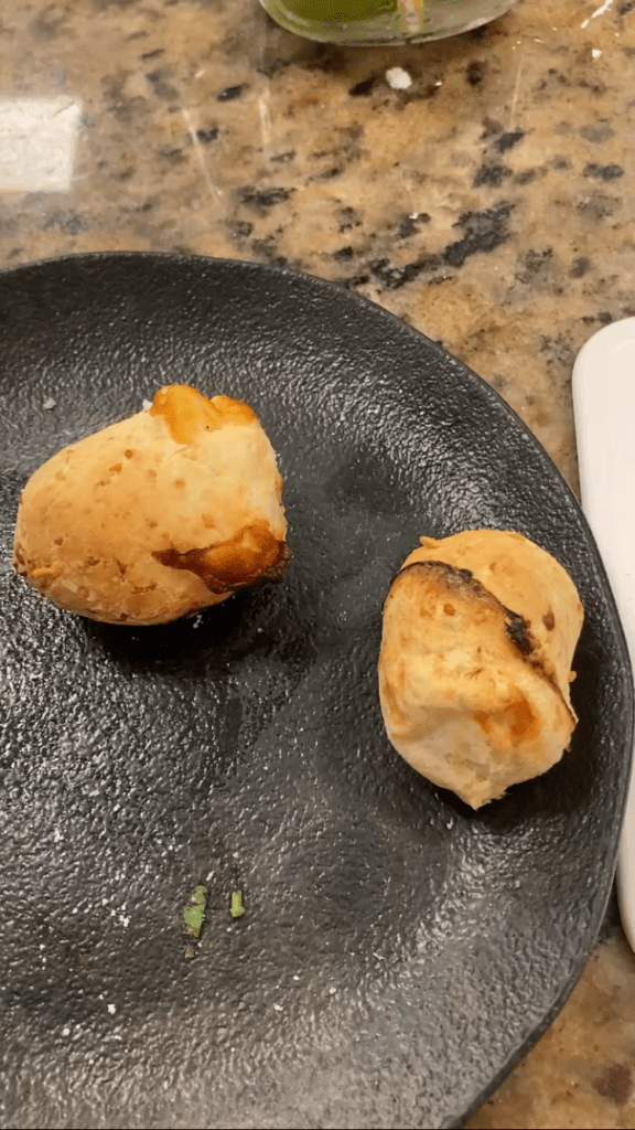 Next, we prepped one of the most beloved snacks/party foods in all of Brazil: Pão de queijo. Literally translated to “cheese bread”, it is a ball of cheese (duh) and tapioca flour. This flour comes from the cassava plant, which proved a key ingredient throughout our class. We rolled a series of little pão de queijo balls and slapped them in the air-fryer to bake. There were so many that we had to bake them in two separate batches.